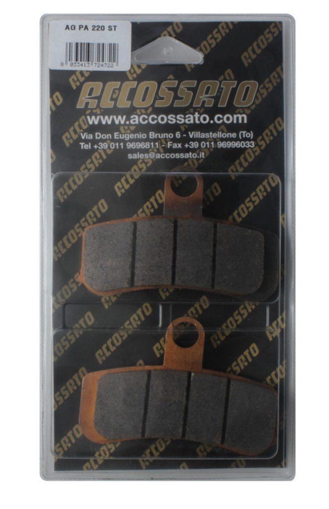 Accossato Brake Pad AGPA220 (dimensions 88.6x61.8x8). Brake pads kit available in SINTERED compound for guarantee a high and costant grip level at hi