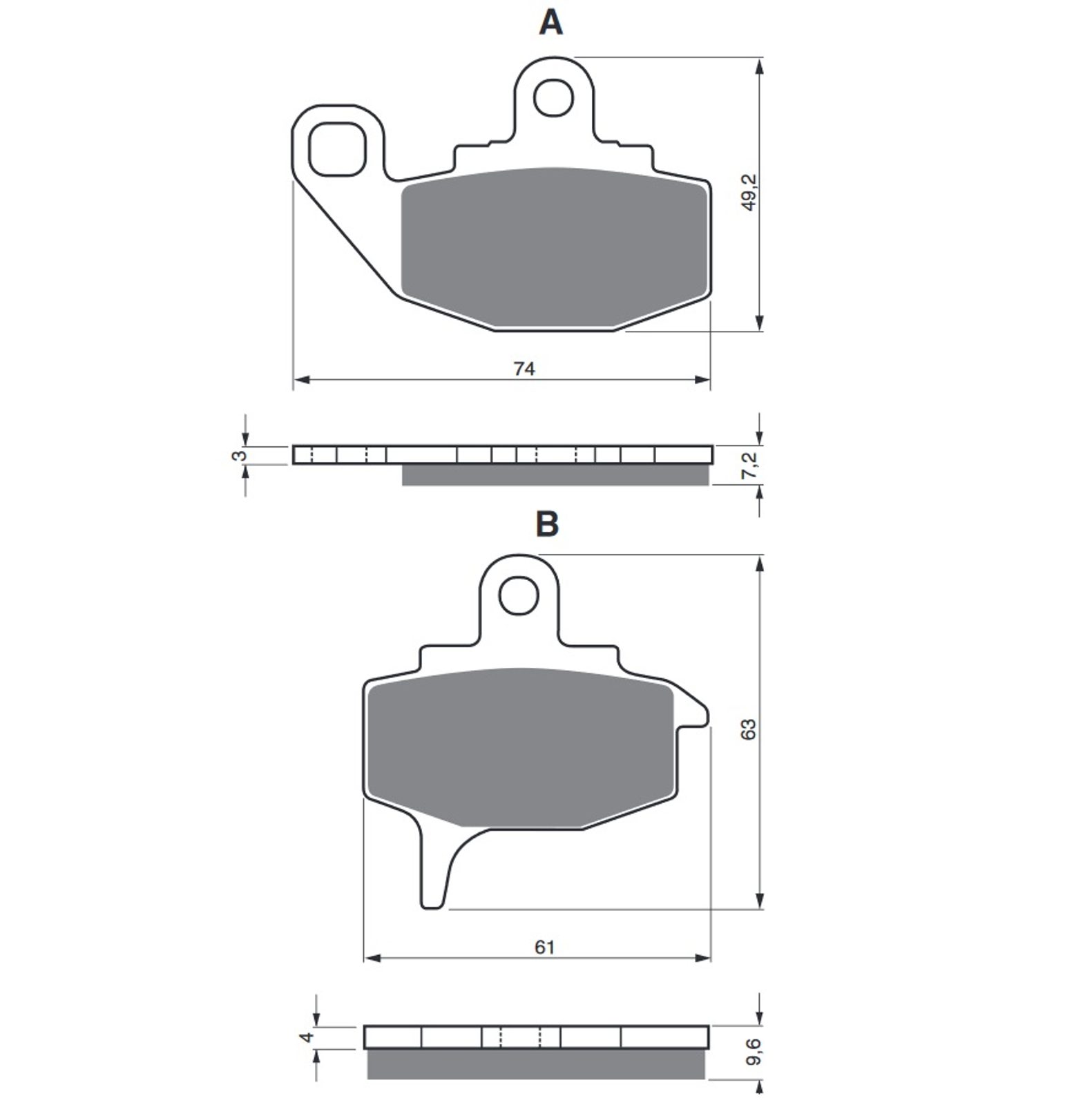 Sintrované brzdové destičky pro lehčí motocykly a běžné použití. Silniční typy mají homologaci TÜV.