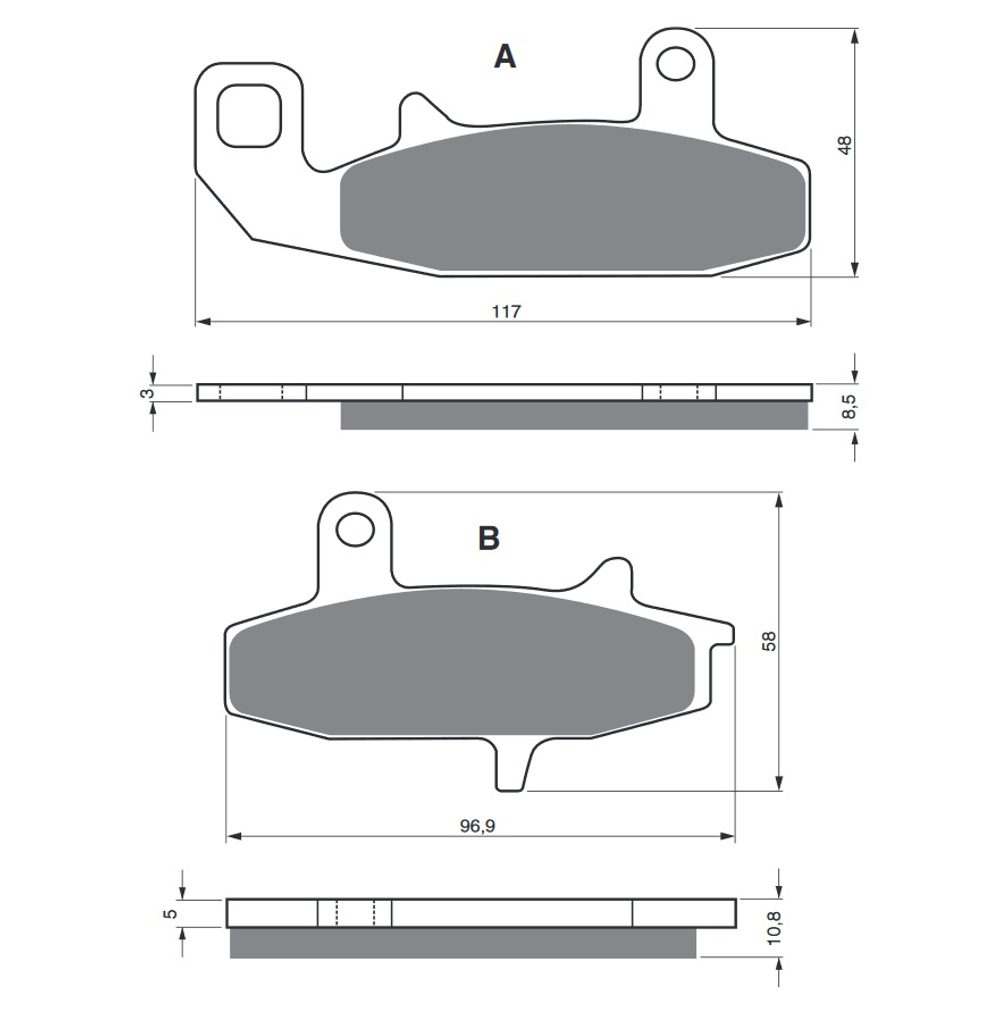 Sintrované brzdové destičky pro sportovní použití nebo těžší motocykly. Silniční typy mají homologaci TÜV.