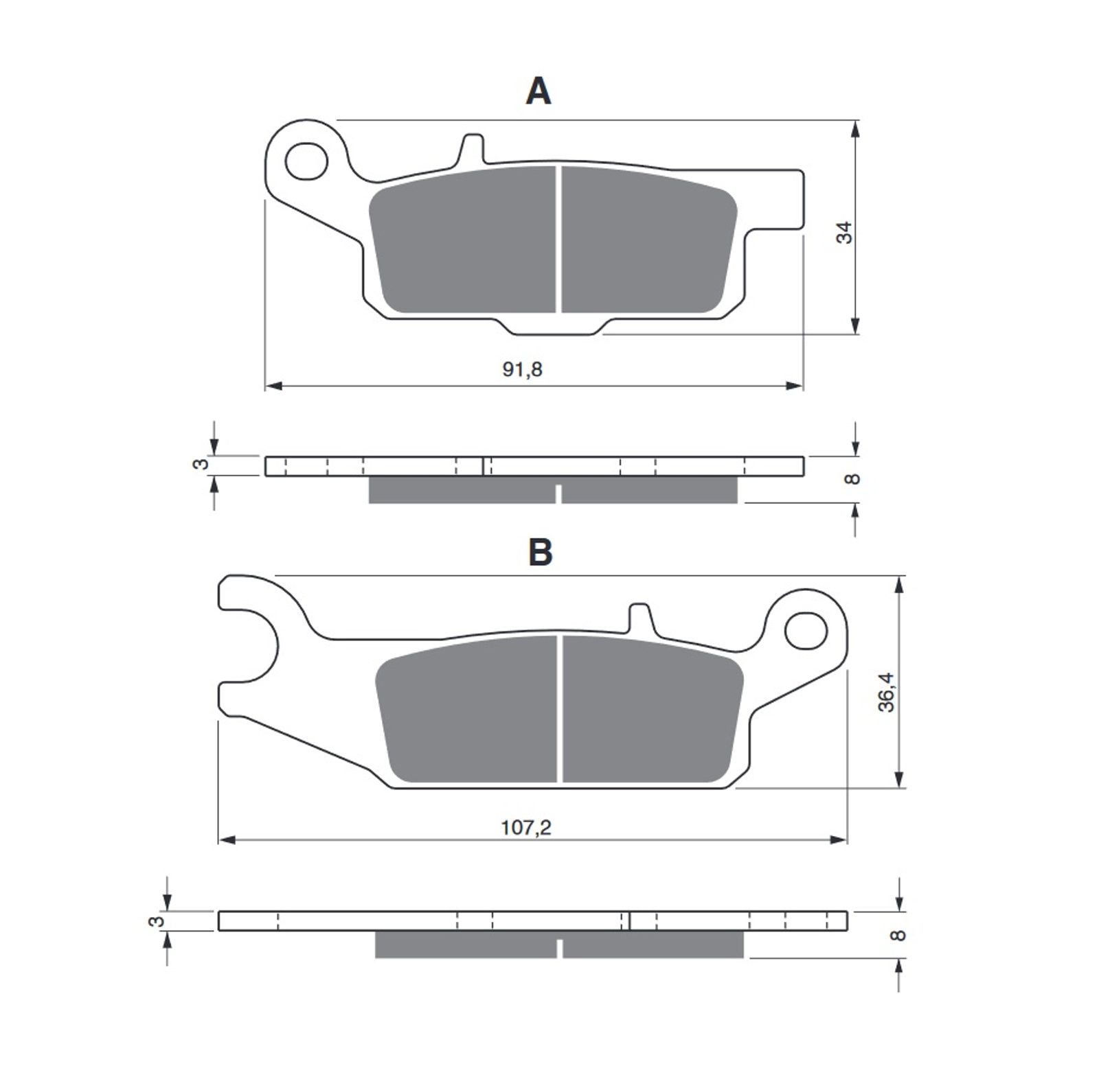 Sintrované brzdové destičky pro lehčí motocykly a běžné použití. Silniční typy mají homologaci TÜV.