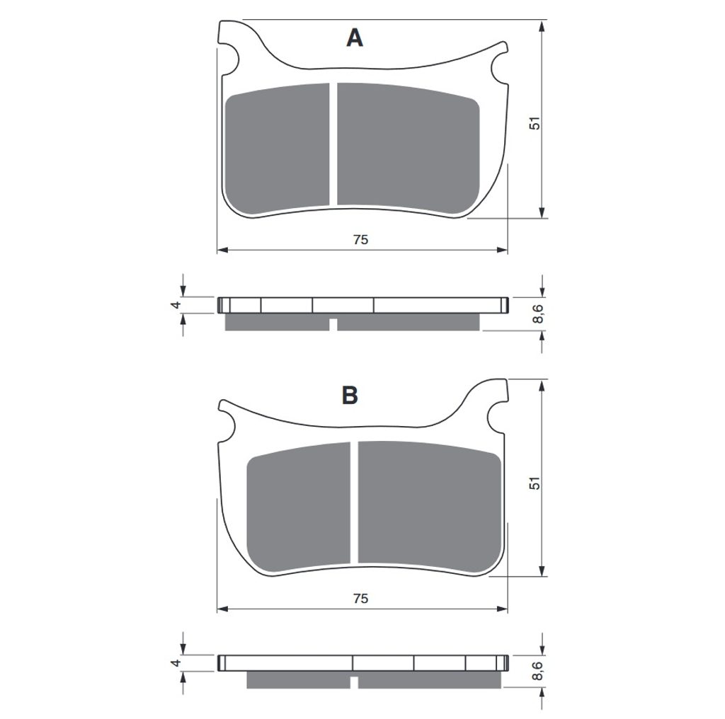 Sintrované brzdové destičky pro sportovní použití nebo těžší motocykly. Silniční typy mají homologaci TÜV.