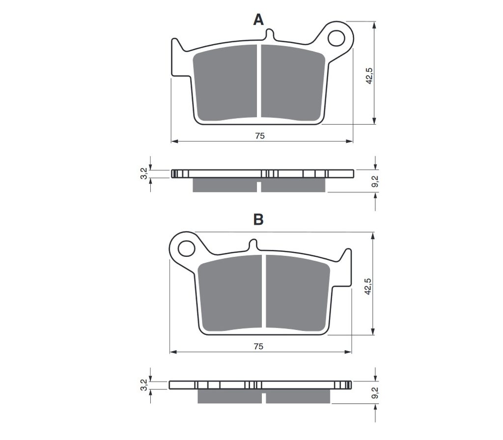Sintrované brzdové destičky pro lehčí motocykly a běžné použití. Silniční typy mají homologaci TÜV.