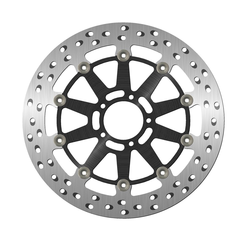 Barva brzdné plochy je výsledkem speciálního tepelného zpracování, které dodává oceli toto charakteristické duhové zbarvení, díky němuž bude váš stroj vynikat mezi ostatními. Chladící otvory nejsou orientovány vertikálně, ale horizontálně a jsou uspořádány ve skupinách po třech v každém směru. Ventilační otvory společně se speciálním tepelným zpracováním zabraňují přehřátí materiálu, které by mohlo vést k deformaci kotouče.