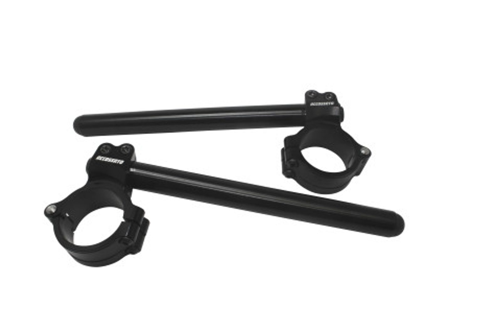 Řídítka ACCOSSATO CNC obráběná, dodávaná s kovovou objímkou složenou ze dvou polokruhů, s úhlem náklonu 10°.