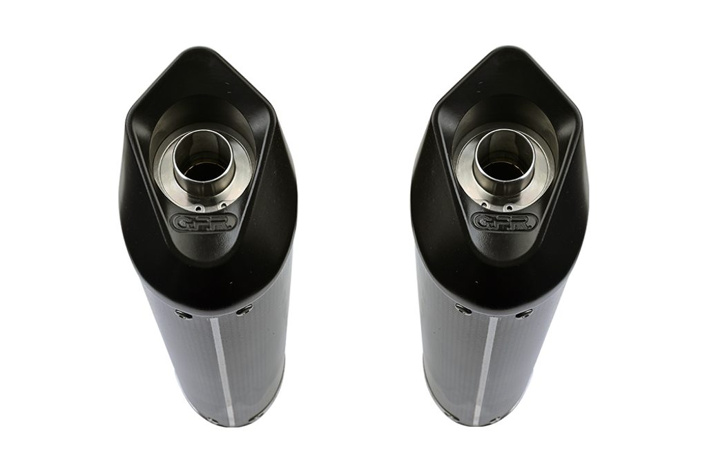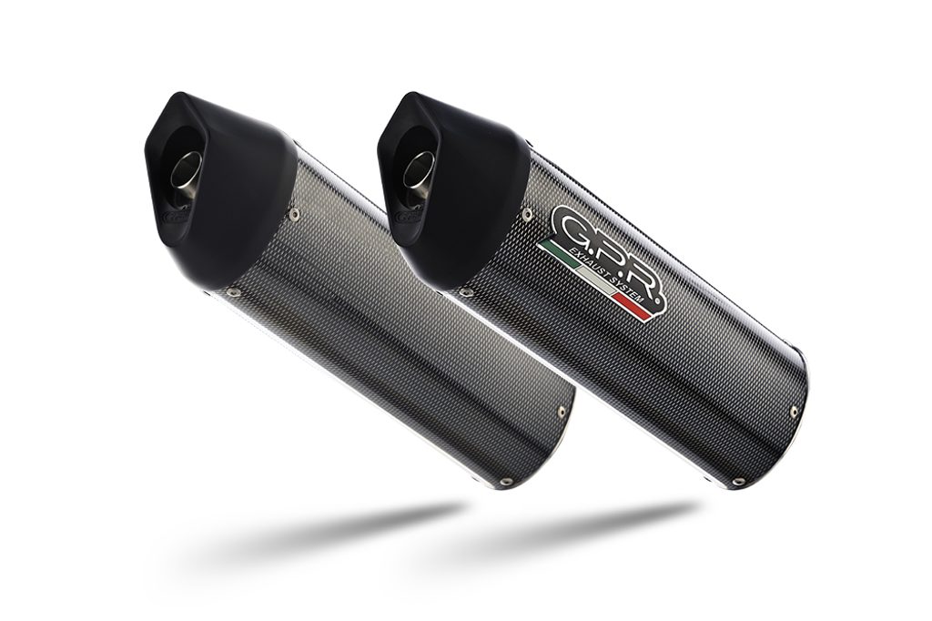 Dvojitá koncovka výfuku Slip-on GPR FURORE CAT.65.1.FUPO Matná černá zahrnuje odnímatelné db killery, spojovací svody a katalyzátory