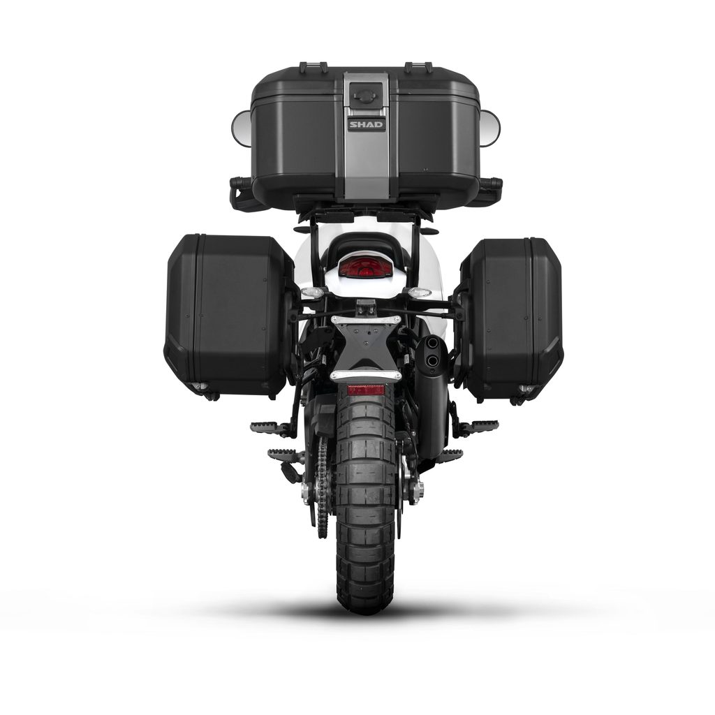 4P SYSTEM 4P montážní sady jsou navrženy a vyrobeny 100% v Barceloně a slouží k připevnění bočních kufrů TERRA. Jsou také kompatibilní s bočními kufry SH35 a SH36. Jedná se o ocelovou konstrukci pokrytou vysoce odolnou práškovou barvou.  Díky průměru 20 mm se jedná o nejsilnější konstrukci na trhu, která poskytuje maximální pevnost a odolnost. Tato montážní sada je navíc ještě vyztužená prostřední příčkou pro ty nejextrémnější jízdy.