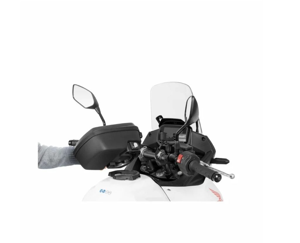 Click System společnosti SHAD je evolucí systému Pin System pro upevnění nádrží. Vyniká snadným použitím a instalací na motocyklu a díky tlačítku, které umožňuje rychlé odblokování pouhým stisknutím tlačítka.