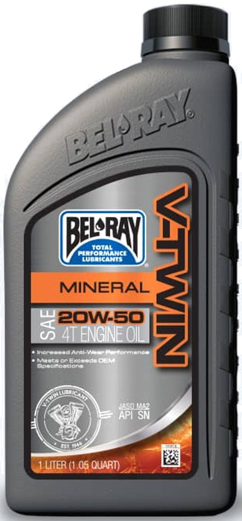 V-Twin Mineral Engine Oil 20W-50 je cenově výhodný, vícerozsahový čtyřtaktní motorový olej, vyvinutý pro motory V-Twin. Je formulován z minerálních základových olejů s vysokým viskozitním indexem a nízkou těkavostí.
