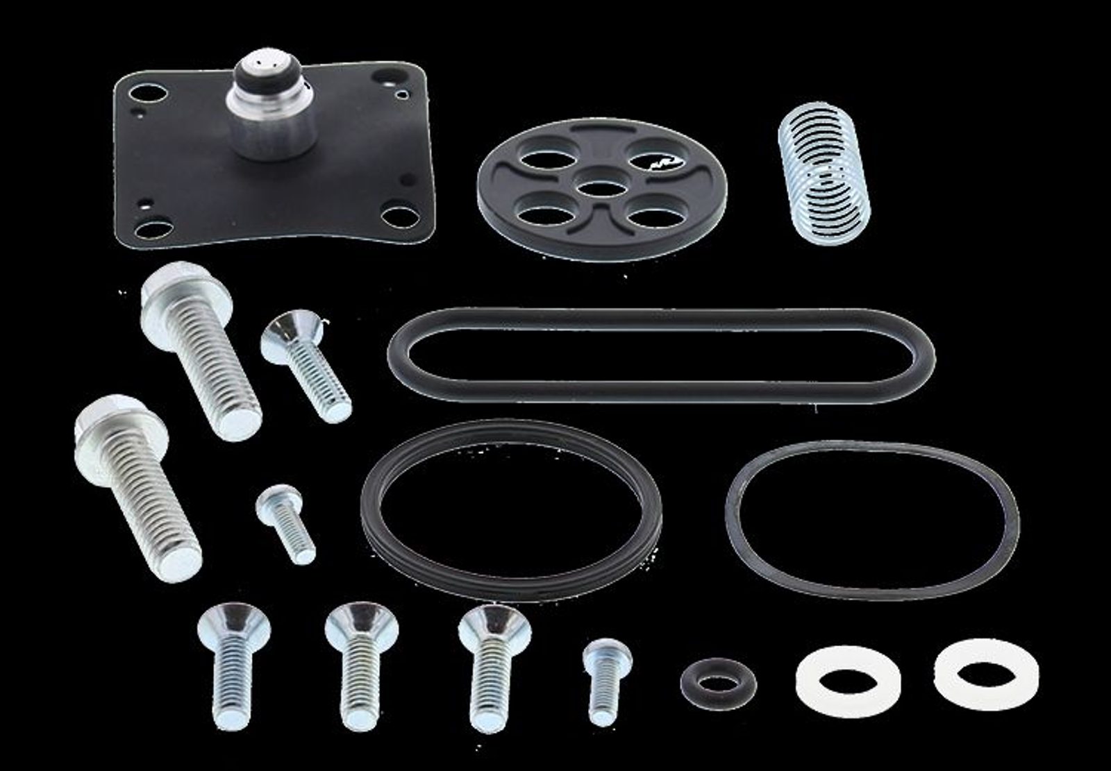 Obsahuje veškeré komponenty potřebné pro repasi benzinového kohoutu.