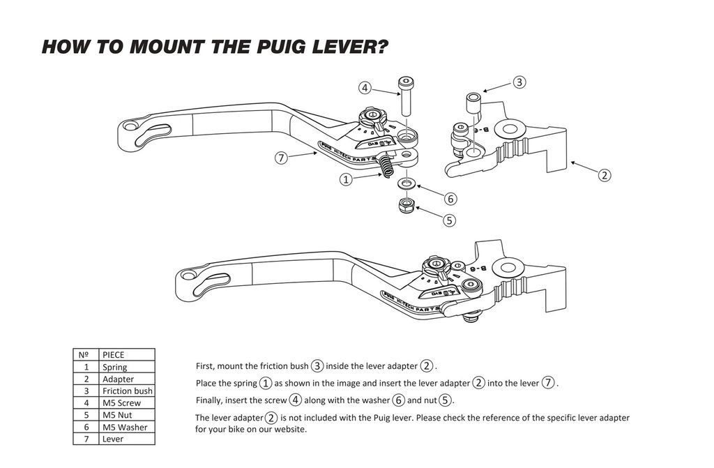 UPOZORNĚNÍ: Nutno dokoupit adaptér páčky dle vybraného motocyklu.