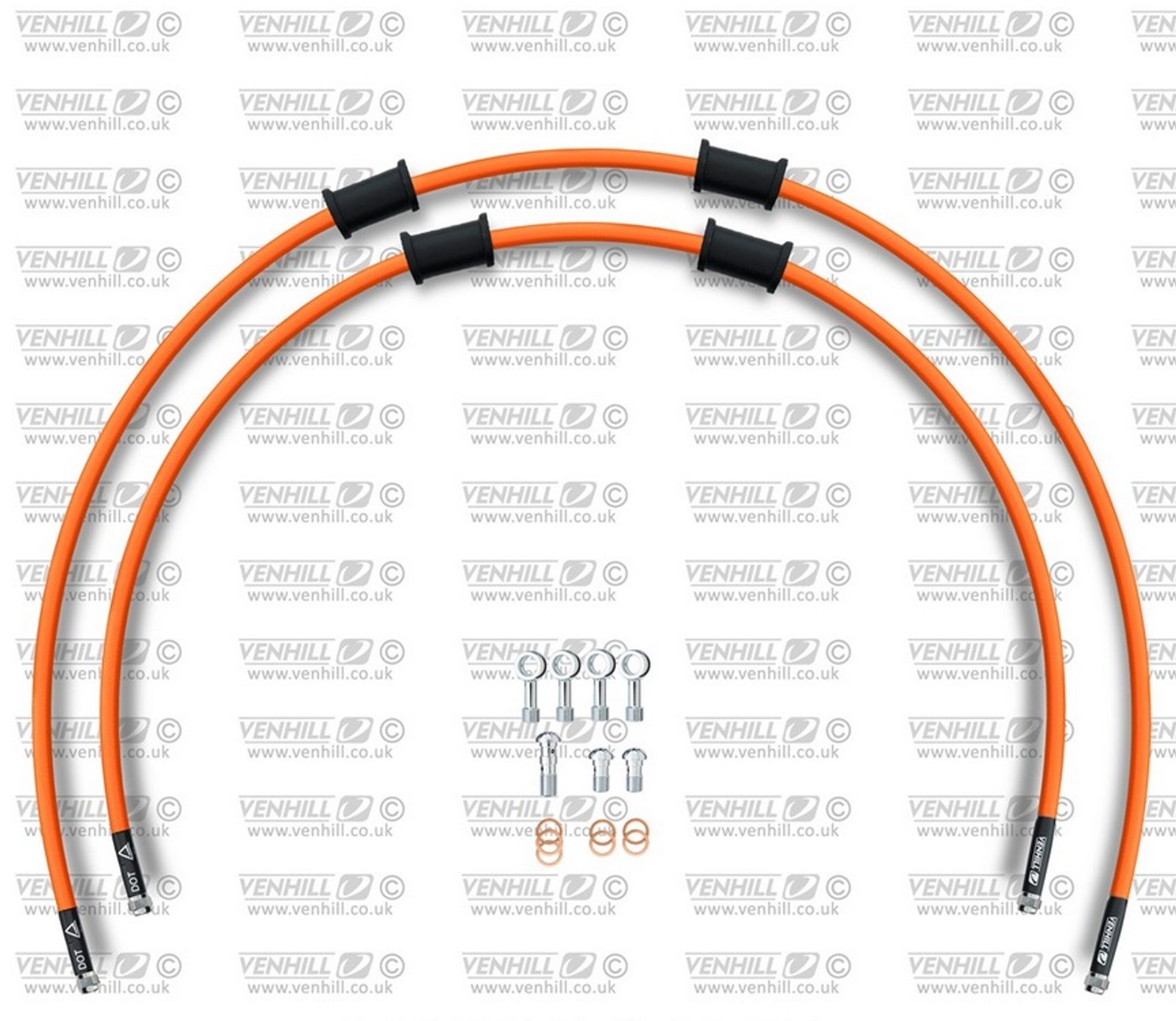 RACE Hadice přední brzdy sada Venhill POWERHOSEPLUS SUZ-4001FS-OR (2 hadice v sadě) oranžové hadice, nerezové koncovky