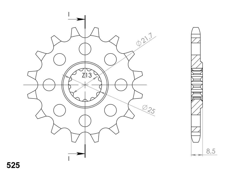 Pevnější zuby = vyšší životnost řetězové sady až o 10%. Kolečko 17z, řetěz 525. Více informací