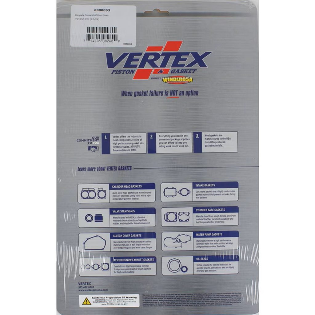 Vertex Complete Gasket Kit Without Seals, ea, 1
