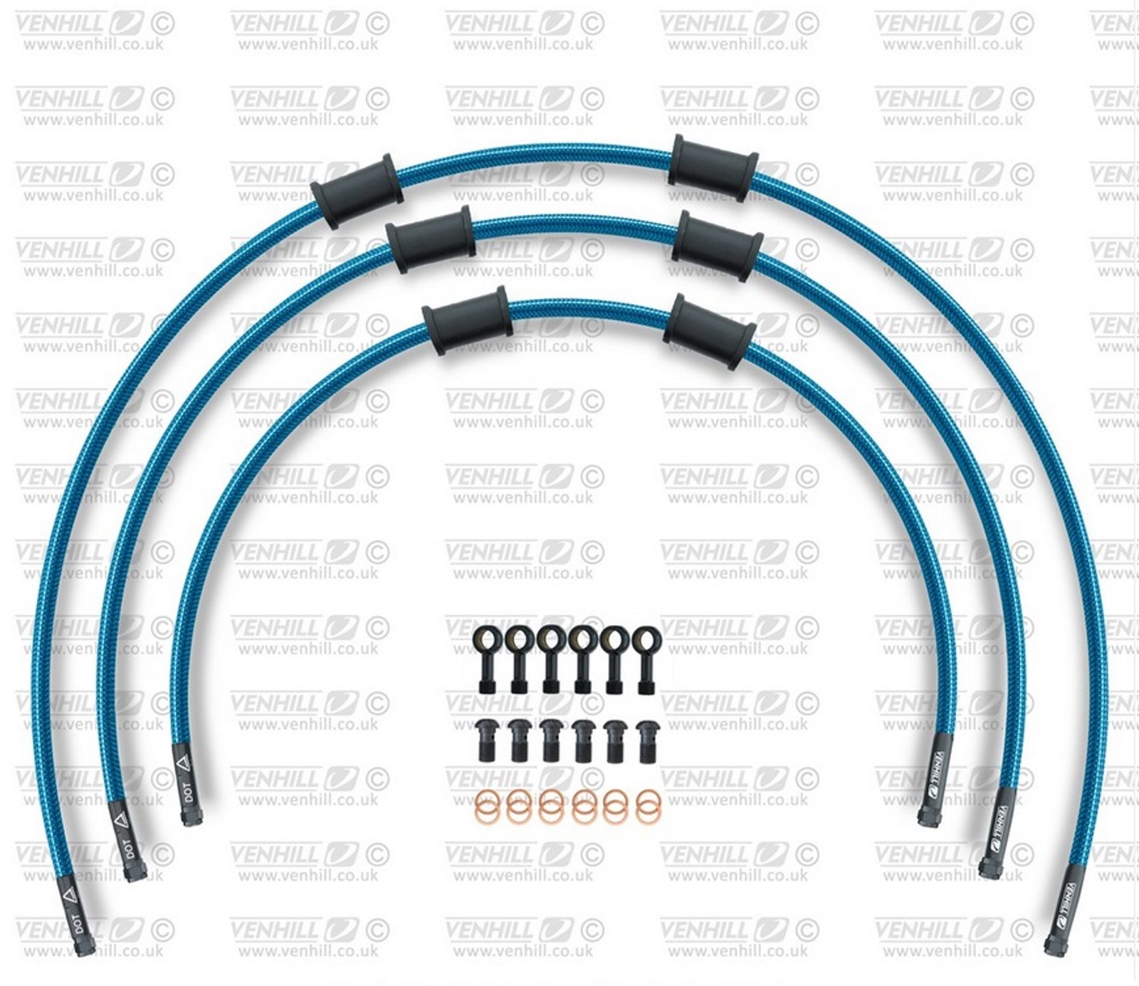 STANDARD Hadice přední brzdy sada Venhill POWERHOSEPLUS BMW-7001FB-TB (3 hadice v sadě) průhledně modré hadice, černé koncovky