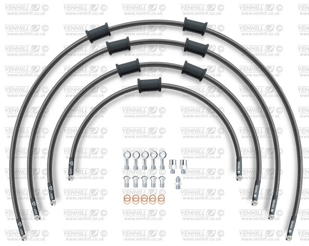 STANDARD Hadice přední brzdy sada Venhill POWERHOSEPLUS HON-10033F-CB (4 hadice v sadě) karbonové hadice, chromové koncovky