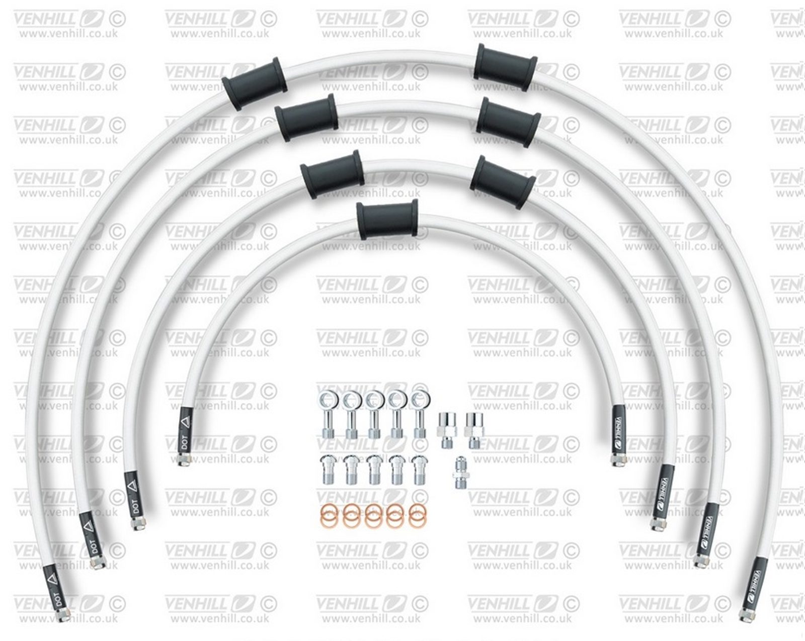 STANDARD Hadice přední brzdy sada Venhill POWERHOSEPLUS HON-10033FS-WT (4 hadice v sadě) bílé hadice, nerezové koncovky
