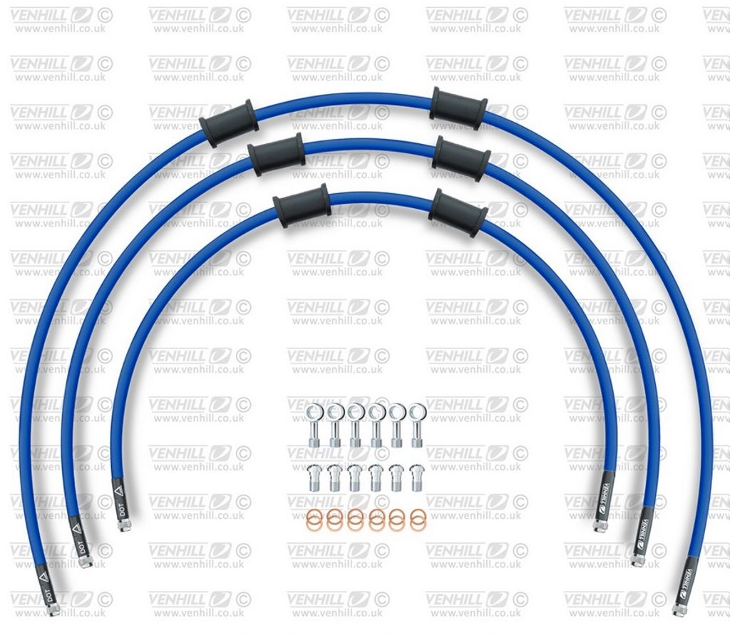 STANDARD Hadice přední brzdy sada Venhill POWERHOSEPLUS HON-7001F-SB (3 hadice v sadě) modré hadice, chromové koncovky