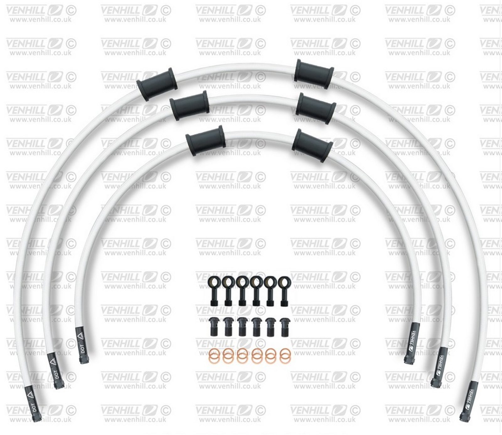 STANDARD Hadice přední brzdy sada Venhill POWERHOSEPLUS HON-7017FB-WT (3 hadice v sadě) bílé hadice, černé koncovky
