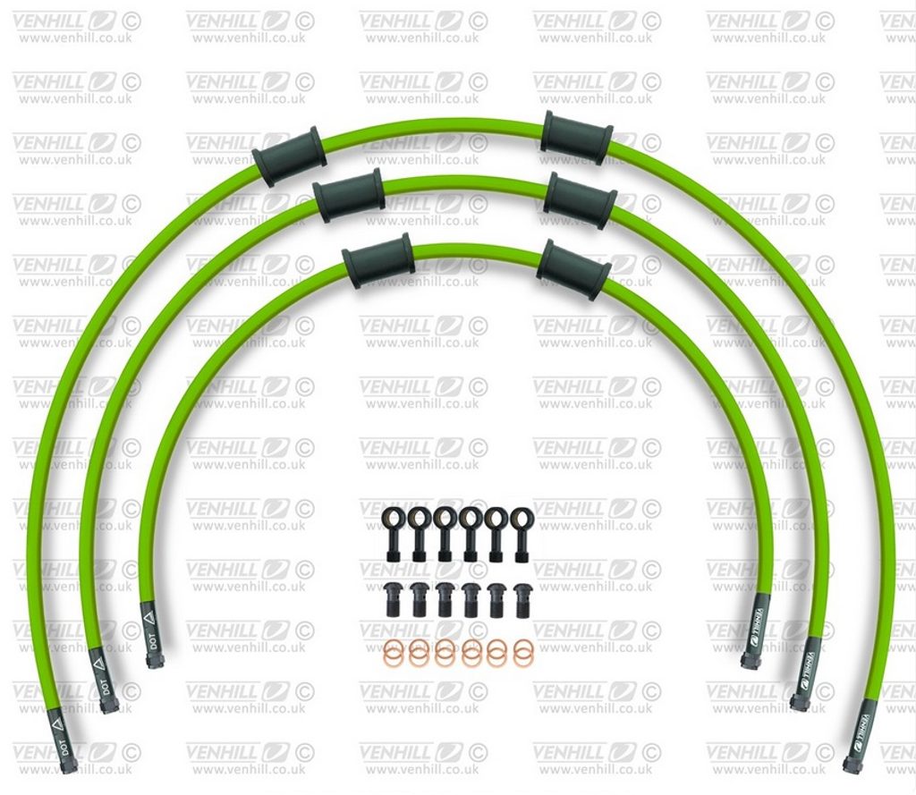 STANDARD Hadice přední brzdy sada Venhill POWERHOSEPLUS HON-9001FB-GR (3 hadice v sadě) zelené hadice, černé koncovky