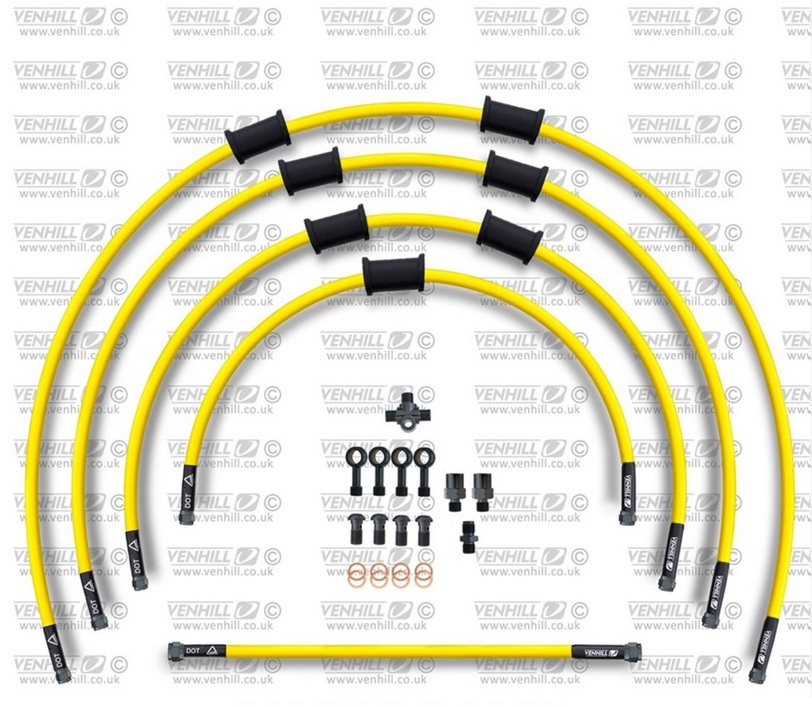 STANDARD Hadice přední brzdy sada Venhill POWERHOSEPLUS KAW-9001FB-YE (5hadic v sadě) žluté hadice, černé koncovky