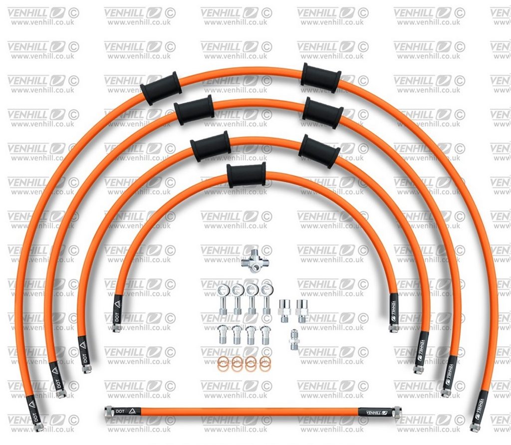 STANDARD Hadice přední brzdy sada Venhill POWERHOSEPLUS SUZ-10002F-OR (5hadic v sadě) oranžové hadice, chromové koncovky