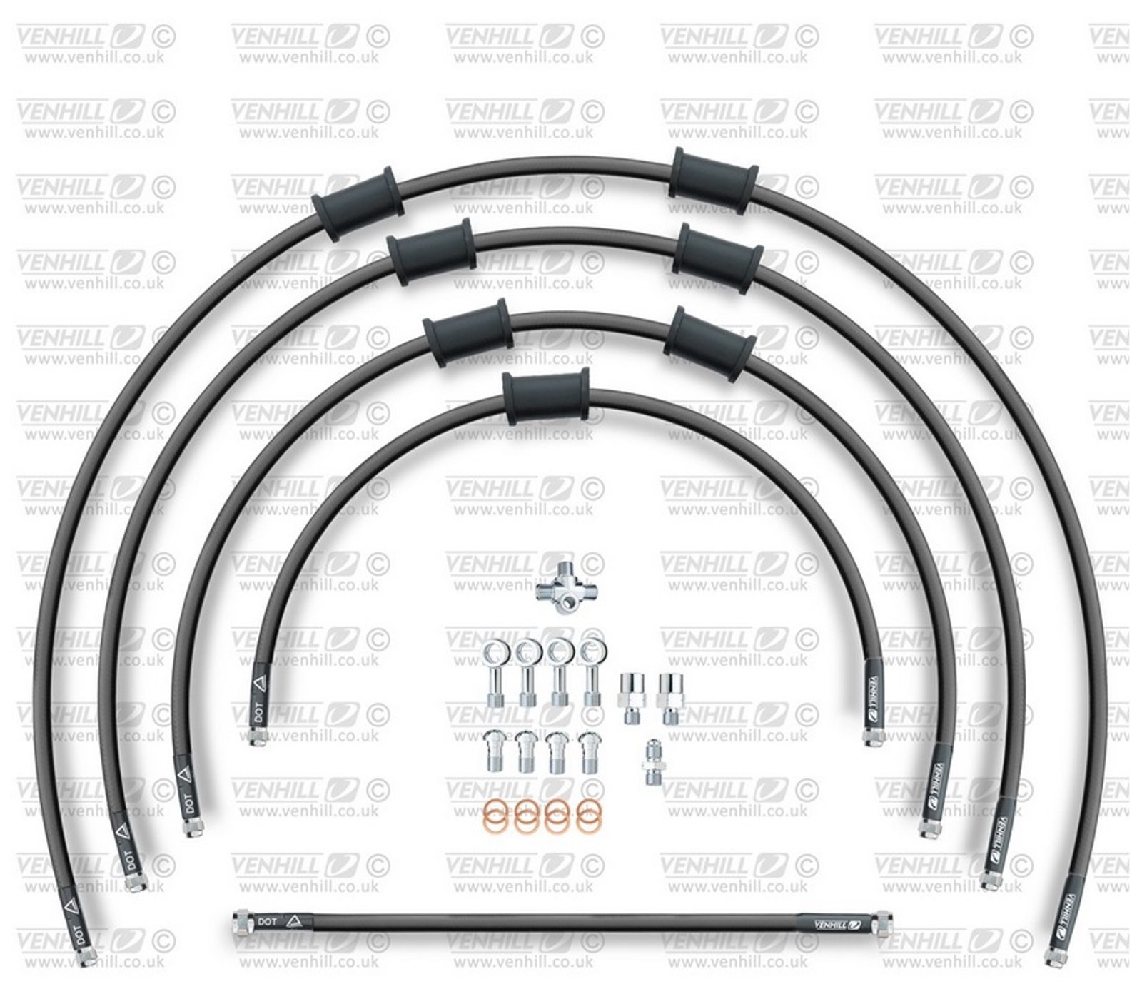 STANDARD Hadice přední brzdy sada Venhill POWERHOSEPLUS SUZ-11003FS-BK (5hadic v sadě) černé hadice, nerezové koncovky