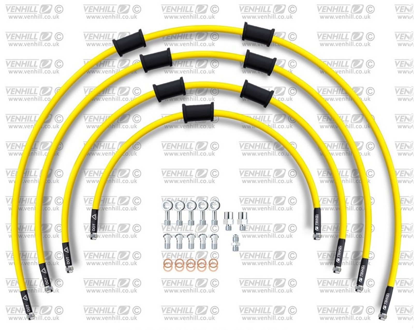 STANDARD Hadice přední brzdy sada Venhill POWERHOSEPLUS SUZ-5004FS-YE (4 hadice v sadě) žluté hadice, nerezové koncovky