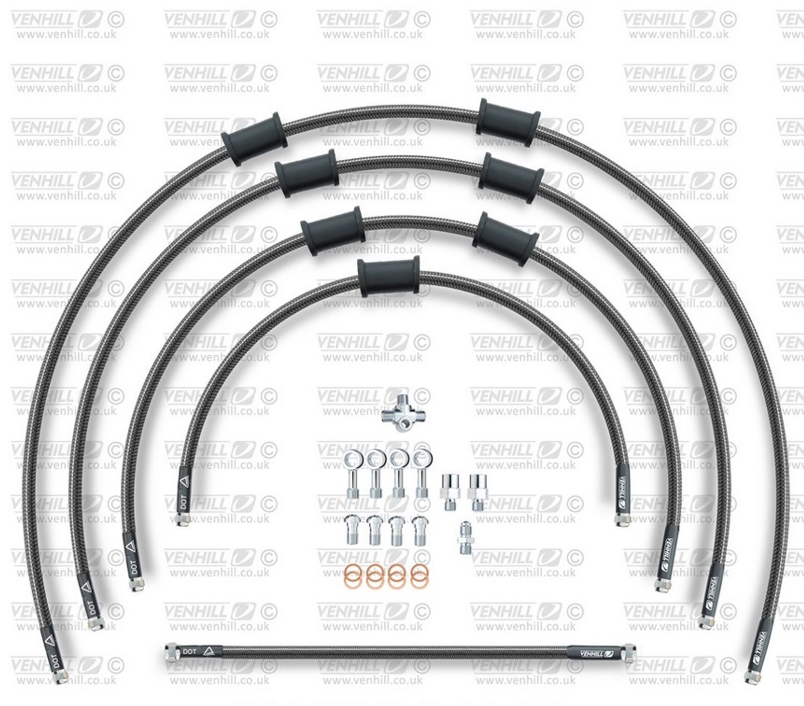 STANDARD Hadice přední brzdy sada Venhill POWERHOSEPLUS YAM-10031F-CB (5hadic v sadě) karbonové hadice, chromové koncovky
