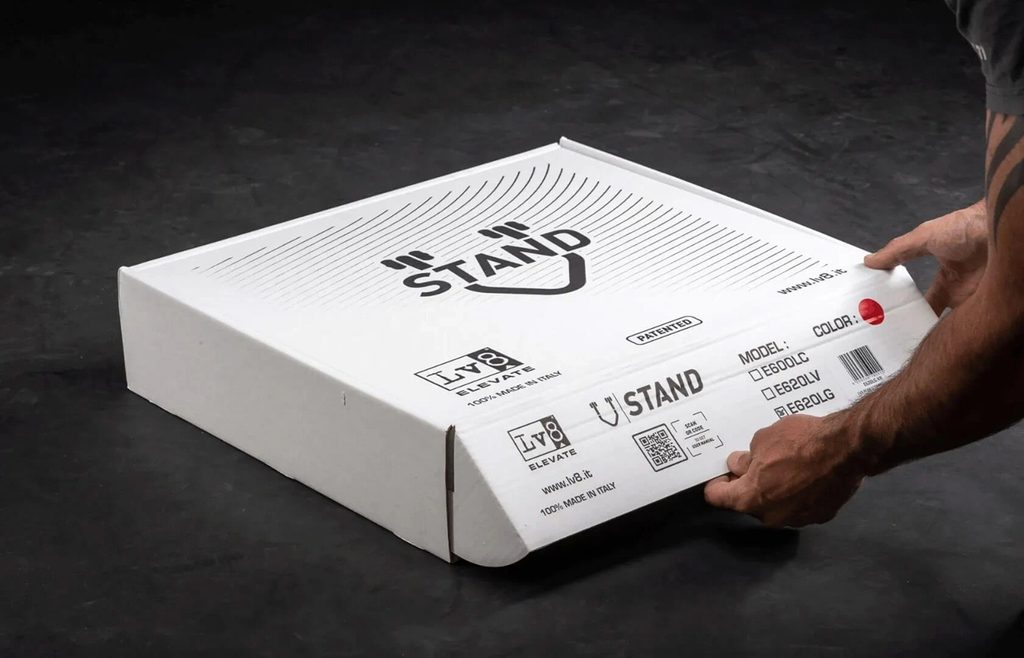 Patentovaný zadní stojan na motorku dodávaný ve třech snadno montovatelných dílech - lze ho sestavit bez použití šroubů a šroubováků.