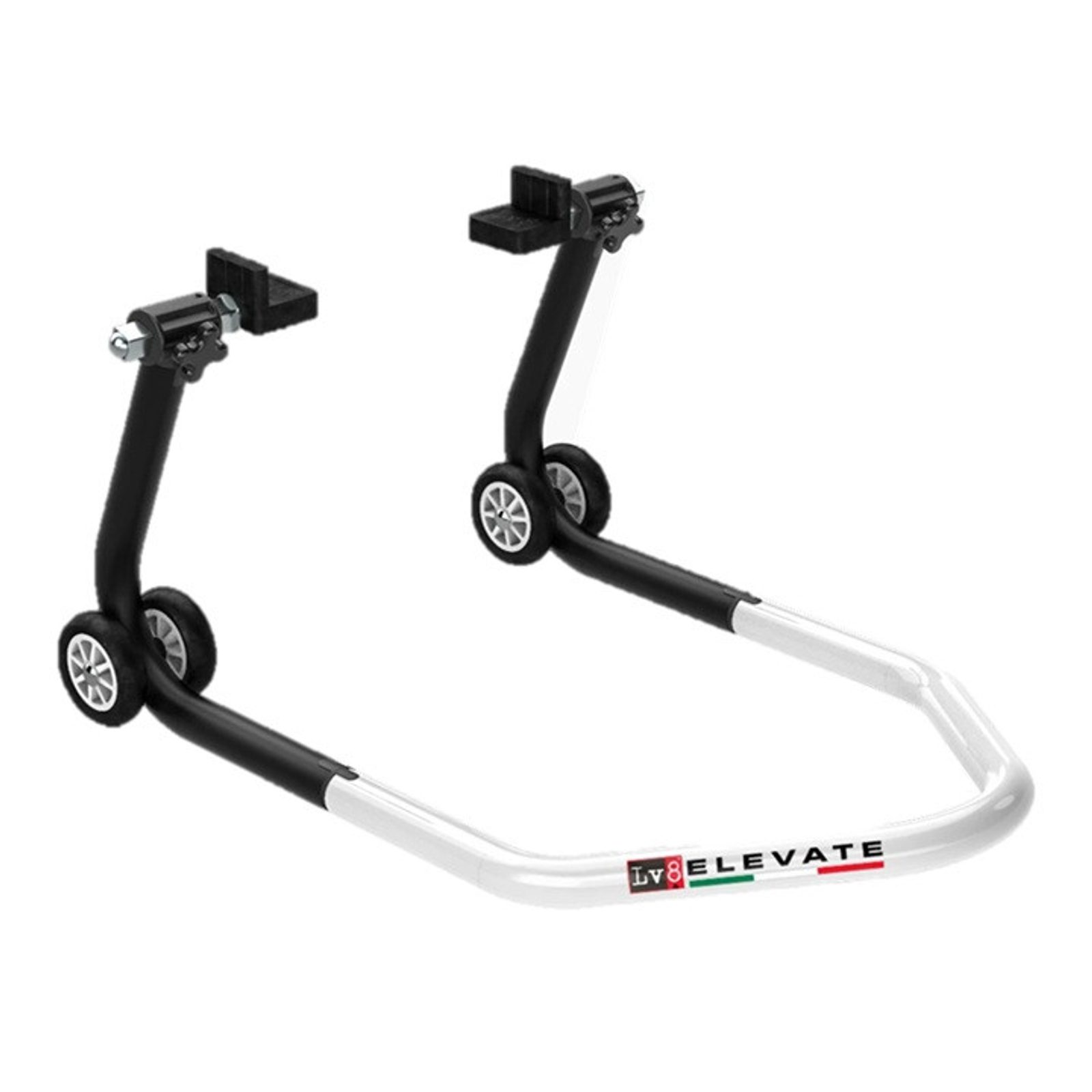 UNIVERSAL REAR STAND WITH RUBBER CURSORS - BLACK/WHITE Více informací