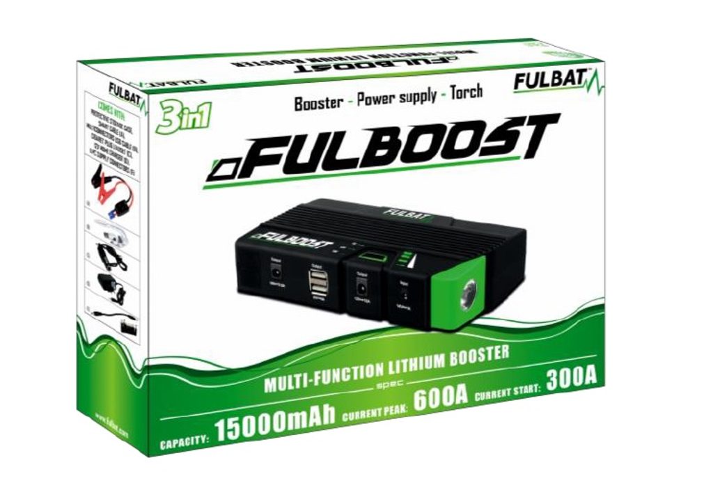 FULBOOST je kompaktní a přenosný multifunkční lithiový booster pro startování vozidel, dobíjení USB zařízení a nouzové osvětlení. Díky lepšímu startovacímu výkonu je nyní náš FULBOOST schopen dodávat špičkový proud 1500 A. Náš FULBOOST, navržený s vnitřní lithium-iontovou baterií, může také dobíjet všechny typy elektrických spotřebičů (smartphony, tablety, sluchátka…). Funkce svítilny je užitečná v případě nouze. Snadno se používá, skladuje a nabíjí. FULBOOST je ideálním záložním řešením, které můžete vložit do kufru motocyklu, přihrádky na rukavice nebo batohu dobrodruha!